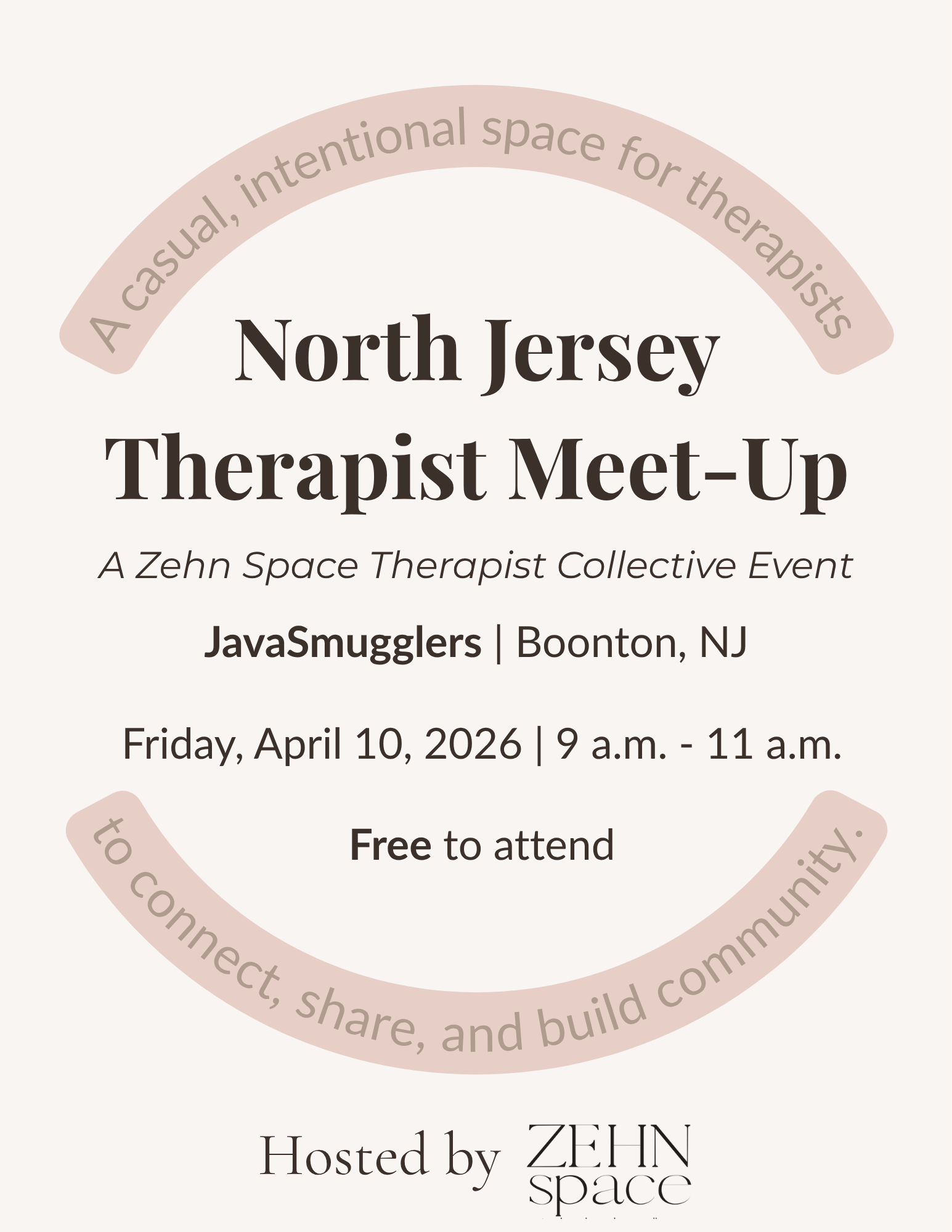 That’s why I’m bringing back the North Jersey Therapist Meetup, now as part of the Zehn Space Therapist Collective.