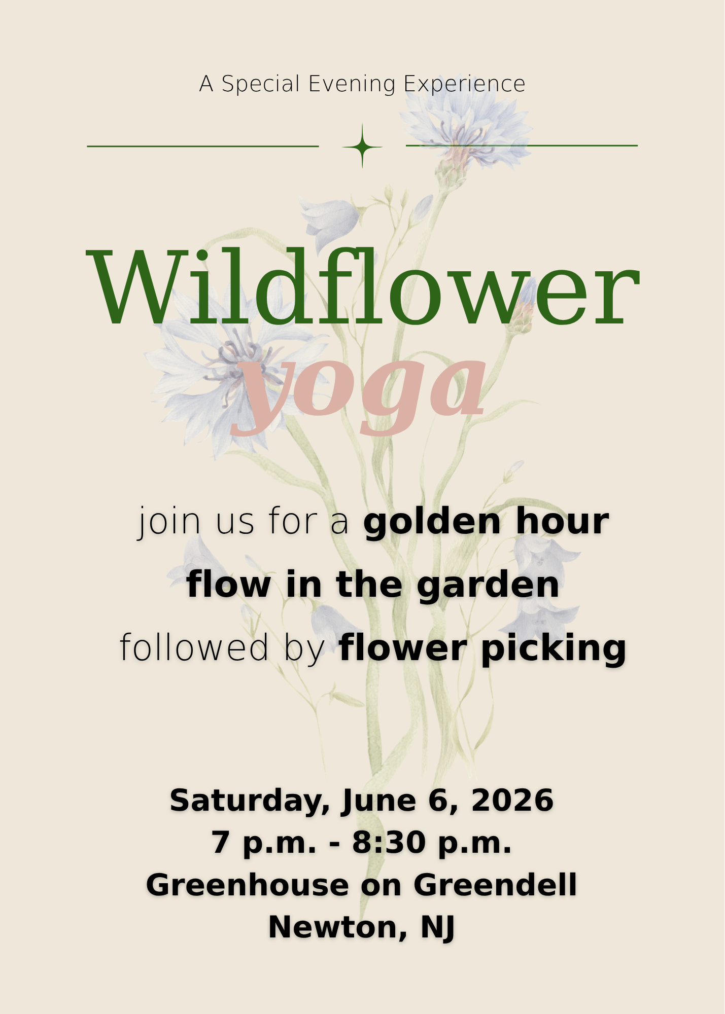 Join us among the blooming flowers and flow into the sunset, followed by time to roam the farm and pick your own bouquet of fresh flowers.